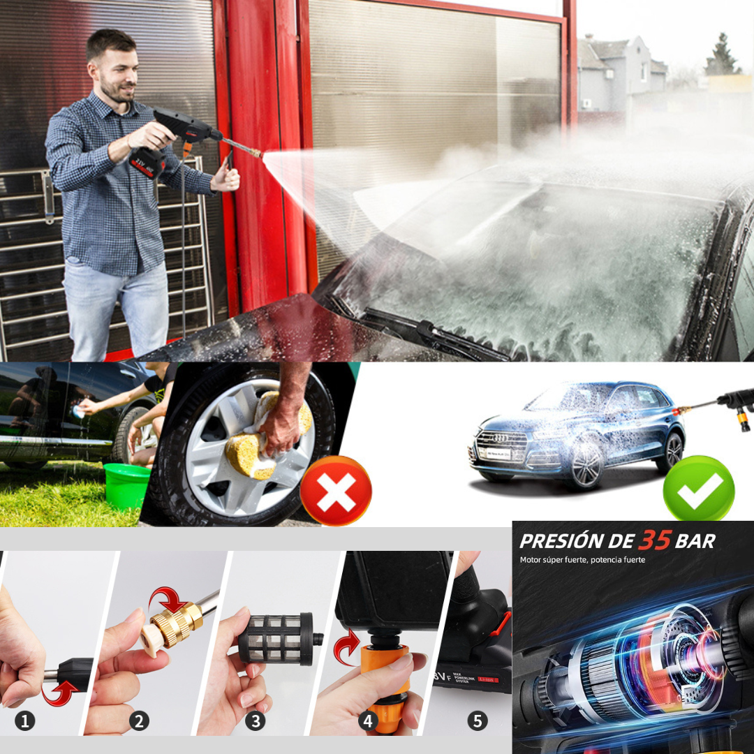 Te soy sincero: cuando probé por primera vez la Hidro lavadora Inalámbrica, entendí por qué todos mis clientes la recomiendan. Con sus 150 W de potencia y hasta 30 bar de presión real, limpia autos, camionetas, motos, bicis o patios en minutos — y lo mejor es que no necesita estar conectada a una canilla. Solo pones la manguera en un balde o botella y listo. 💧